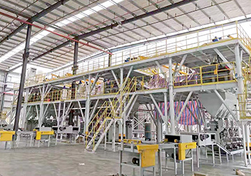 5、当干混砂浆进入搅拌机后,在搅拌机推进端进行预搅拌,然后通过螺旋喂料机进行强制式定量输出。