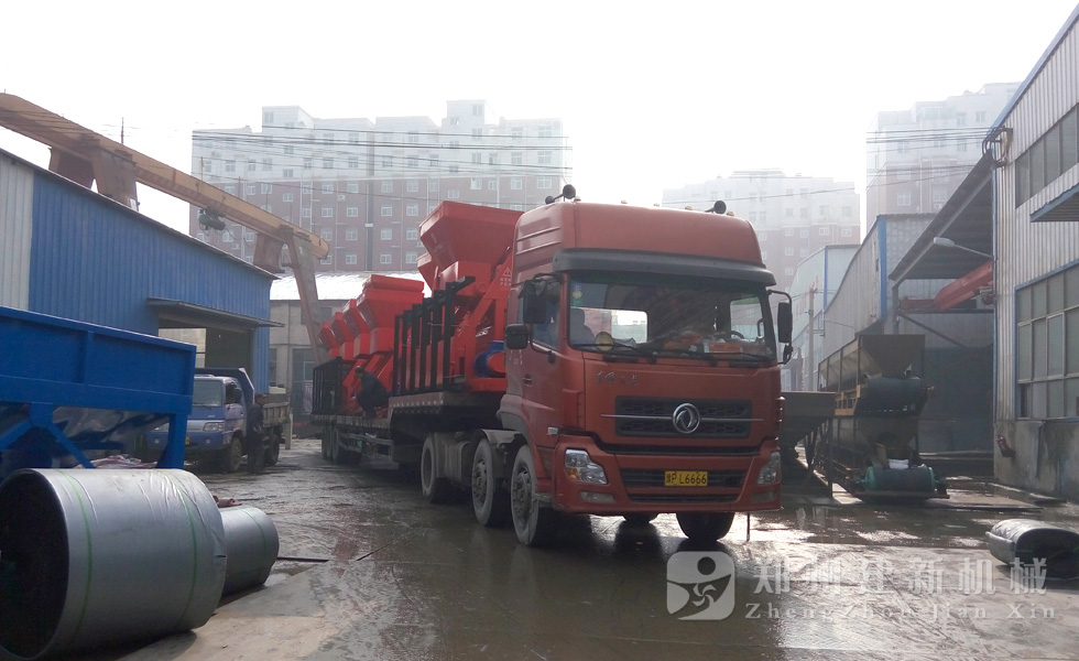 2015年12月1日,6台JS750强制式混凝土搅拌机在郑州建新机械厂家完成装车,发往河南周口。