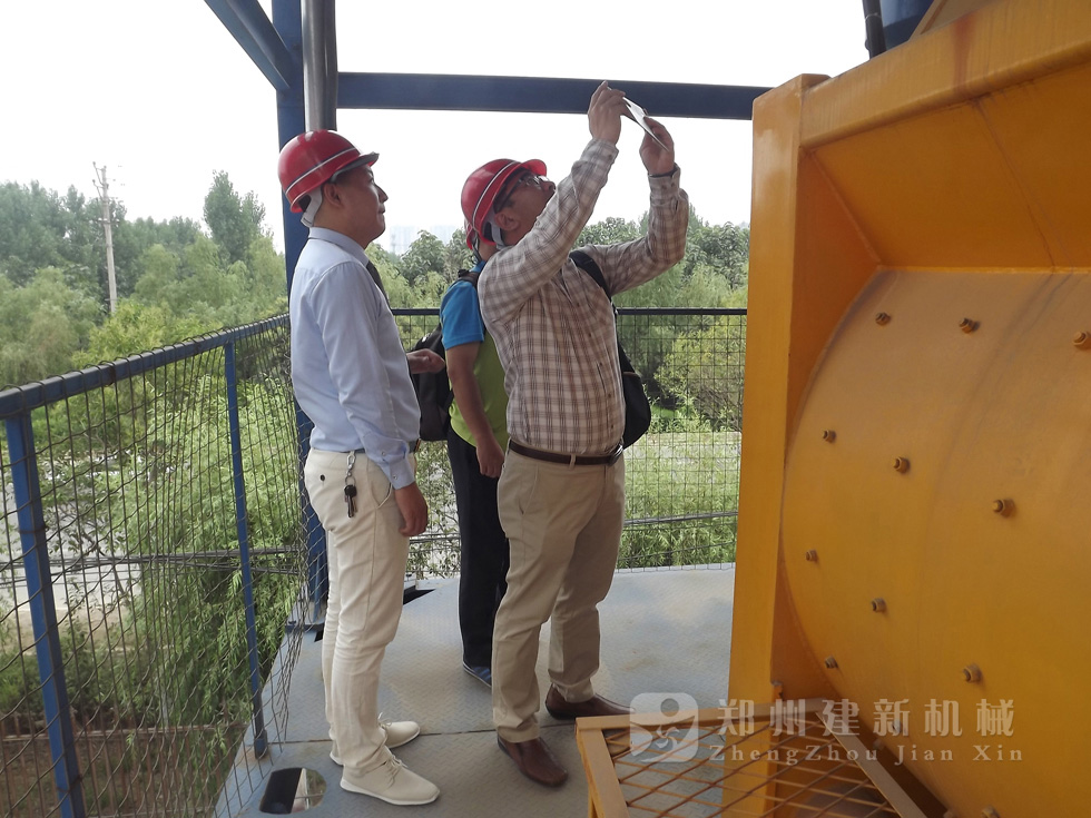 来自韩国的客户在建新外贸部人员的带下,参观了大型混凝土搅拌站的设备,建新公司精湛的工艺、合理的设计,客户赞不绝口,直挑大拇指。